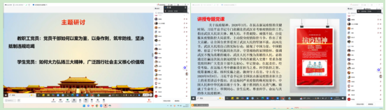 研讨环节,教职工党支部“党员干部如何以案为鉴,以身作则,筑牢防线,坚决抵制违规吃喝”;员工党支部围绕“如何大力弘扬三大精神,广泛践行社会主义核心价值观”进行主题交流发言。