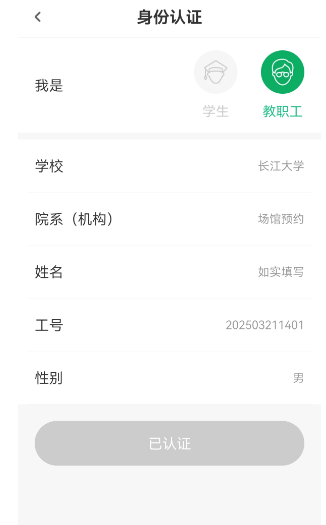 首先请在“华为应用市场”或“App Store”等应用下载平台搜索 下载 “步道乐跑” App. 完成下载后进行以下操作: 身份认证操作说明 【提交身份认证】 在“我的”页面,点击“立即认证”即可进入身份认证界面; 选择“教职工”并填写对应信息,公司选择:bevictor伟德体育,院系选择:场馆预约,姓名:如实填写,工号:填年月日时间 2025年3月21日14:39 如填:20253211439,性别:男或女,认证码:654321,后点击“认证”按钮即可提交认证申请。
