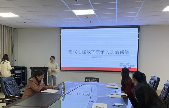 其次是阮芳同学,她就“现代化视域下亲子关系的问题”做了专题报告。首先介绍了亲子关系的含义,接着阐述亲子关系的重要性,包括对语言发展、人格形成、情绪情感和社会性的影响,并对亲子关系的类别进行讲解,紧接着梳理了前人关于亲子关系的不同侧面对儿童心理发展影响的研究,并向我们展示了参考文献。