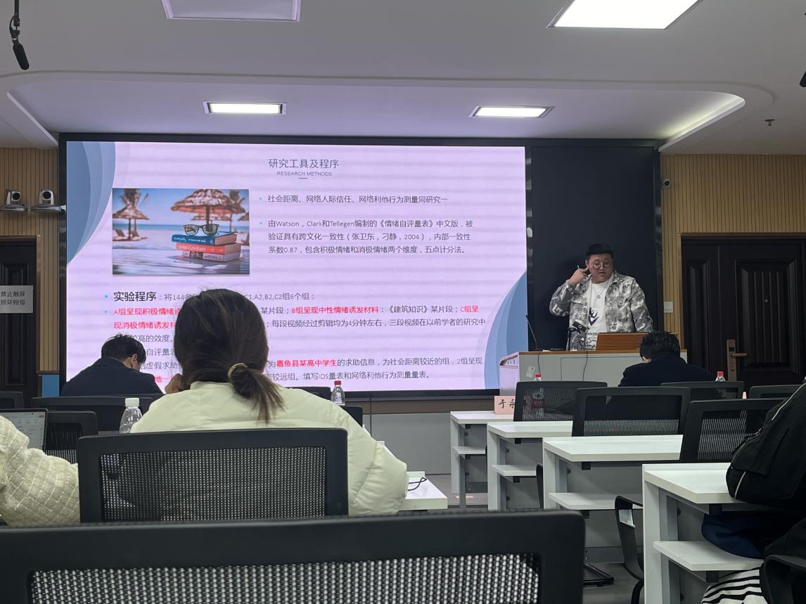 本次活动的四位主讲,即2022级教育学专业心理学方向的秦珂楠、程丽媛、曹晓萱、杨博依次就其研究作了汇报。