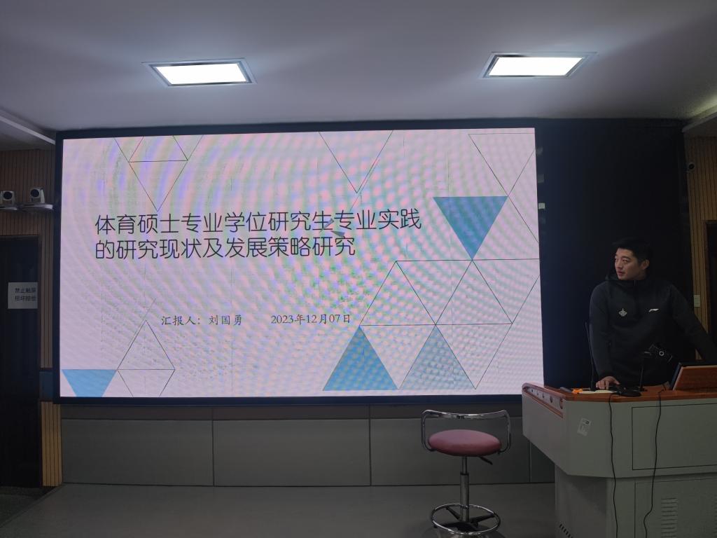 本次活动2022级体育教育训练学的陈舒鹏、王明芳、荣雨檐、刘国勇四位主讲同学依次就其研究成果进行了学术汇报。