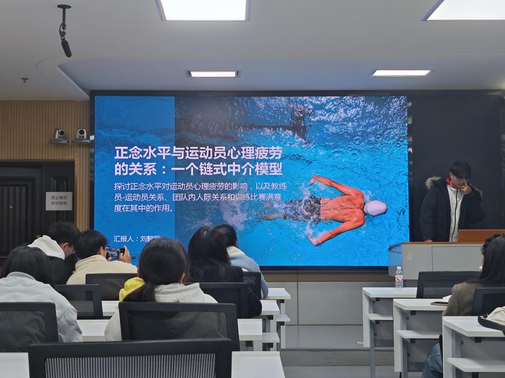 (通讯员 李思腾)2024年12月2日晚,公司第六届研究生学术科技节研究生论坛第三场在文科大楼910报告厅举行。体育教育训练学研究生田丽、候林堰、熊紫光、王志文、向巧玲、刘懿樊依次进行汇报,公司2023级、2024级体育类研究生参与本次活动,活动由公司研究生会主席代琳同学主持。