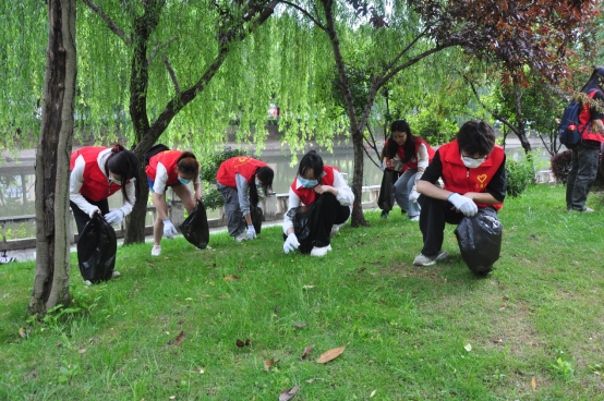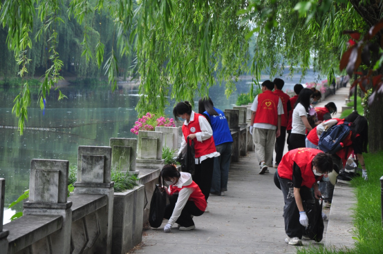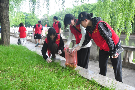 随着活动的深入进行,全体人员身着“红马甲”志愿服,手拿扫把、火钳、垃圾袋、撮箕等清洁工具,沿着江汉北路西干渠岸线对白色垃圾、杂树杂草、水葫芦水花生、网片地笼等垃圾进行全覆盖整治清理。同学们或拿起夹子夹起地上的垃圾,或撑开垃圾袋确保不再地上落下一片垃圾,或仔细清除地面顽固污渍,经过大家的共同努力,江汉北路西干渠沿线面貌焕然一新。