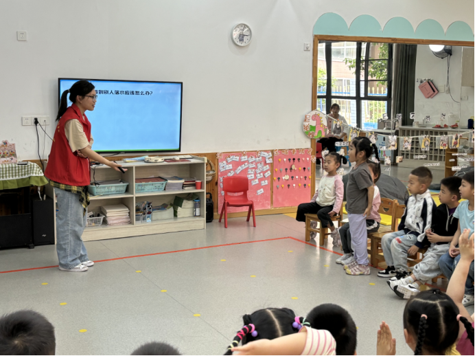 在互动问答环节,志愿者向小朋友们提出了哪些地方可以游泳、能不能一个人去河边游泳、看到有人溺水应该怎么办等问题,小朋友们积极参与,举手抢答,现场气氛十分活跃。志愿者为答对的小朋友准备了小贴纸作为奖励,进一步激发了他们的参与热情。