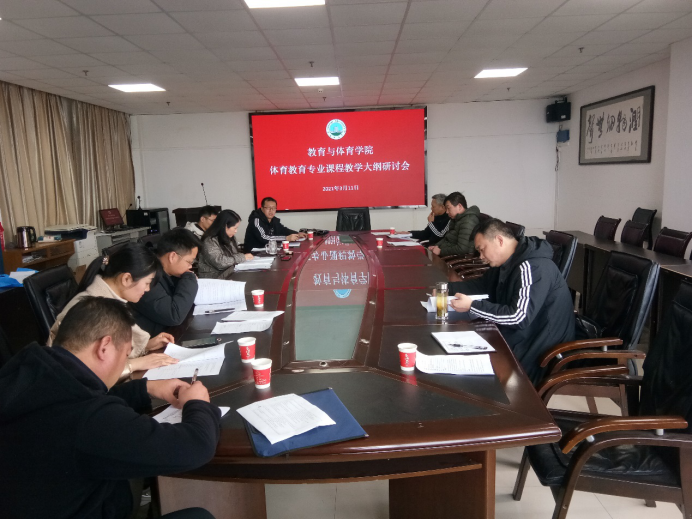 为进一步推动课程建设,提升教学质量,3月11日下午,公司在905会议室召开了体育教育专业课程教学大纲研讨会。会议由张艳红副经理主持,教体系主任杨青宝、社体系主任孔祥魁以及各课程组负责人袁新国、程维峰、樊翠红、周玉庆、薛凌、李明、王志伟参加了本次会议。