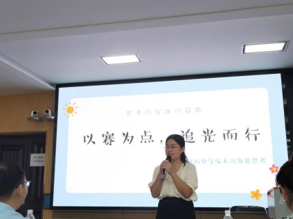 接下来,姚志艳老师以“以赛为点 追光而行——赛课经历分享及本次备赛思考”为标题分享她多次参加武汉市心理健康教育教师教学技能比赛的经验和心得。在赛课经历方面,姚老师强调以“归零”心态,每次课当公开课备课,同时要新颖切题,实现课堂与生活的衔接。关于如何备赛,她强调要了解决赛流程,读懂评分标准,遵循员工身心发展规律。最后,姚老师用无生试讲案例让我们进行点评并总结。