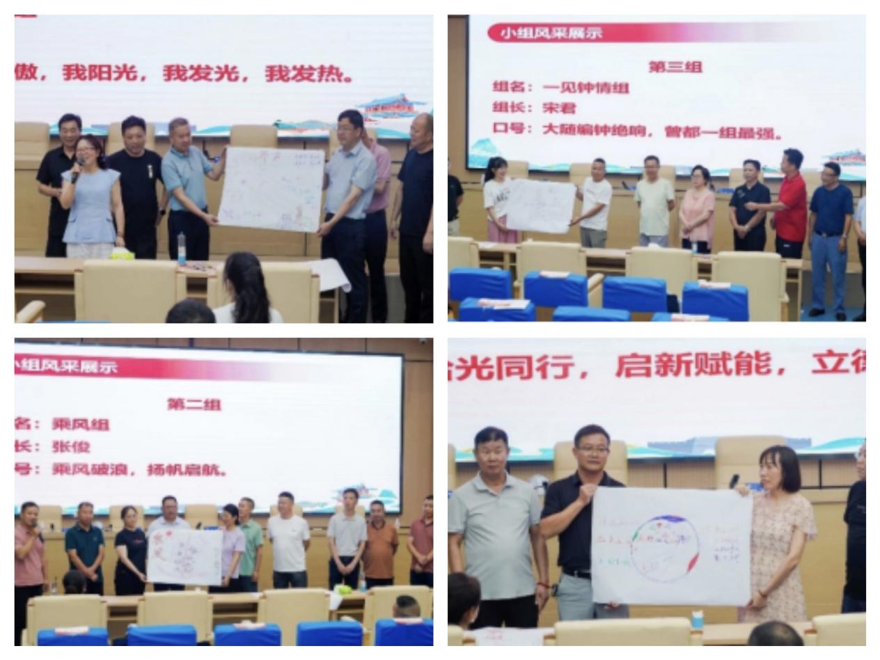 在思想与情感交融碰撞下,“骄阳”、“一见钟情”、“乘风”、“启新拾光”四个学习小组应运而生。组名即是宣言:“骄阳”热情永不枯竭;“一见钟情”忠敢赤诚初心;“乘风”笃行破浪前行;“启新拾光”重启智慧创新。