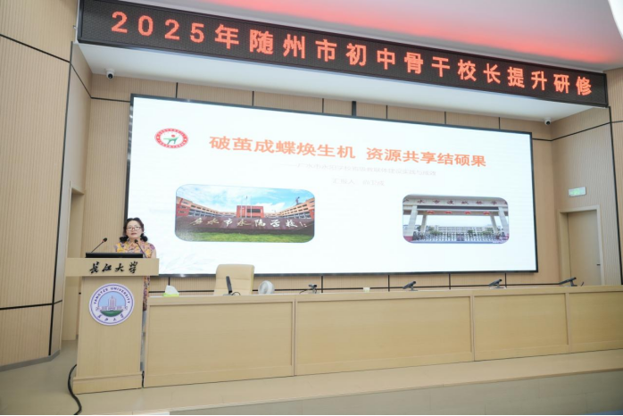 曾都区五眼桥初级中学徐正艳董事长分享的主题是《江畔弦歌承楚韵 杏坛问道启新程》,用数据展示了教学质量提升的显著成效,用行动诠释了“要干就要干好”的坚定信念。